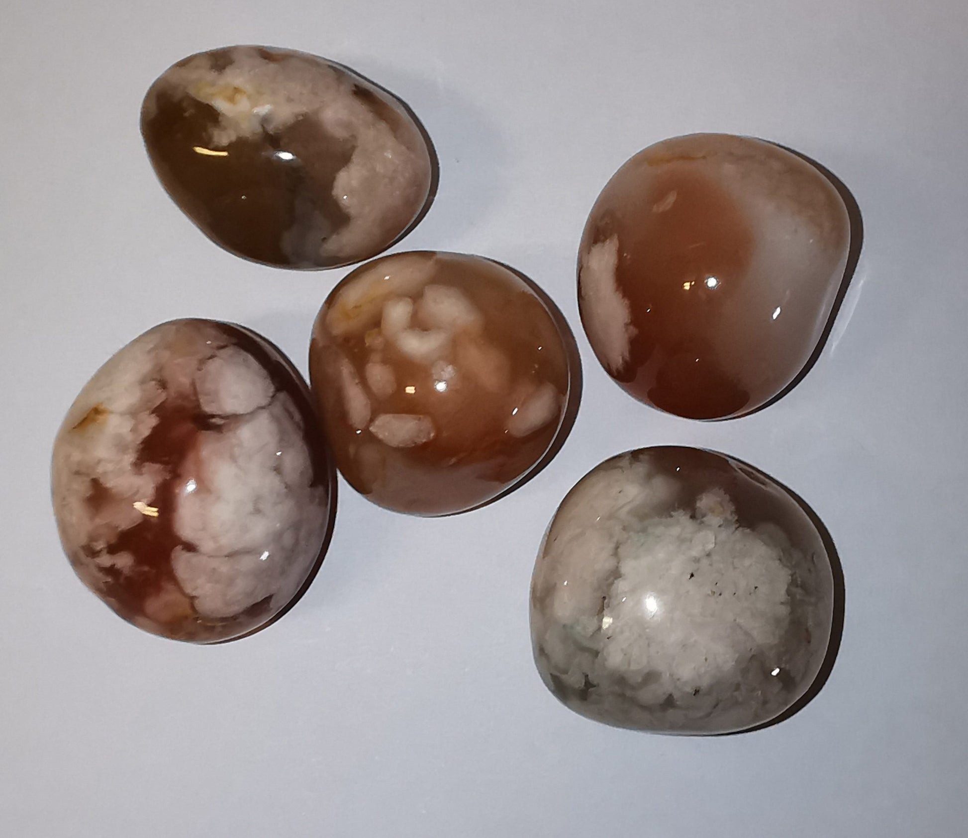 Blomster Agat även kallad Flower agat även kallad körsbärsbloms agat . En mycket vacker sten som visar upp ett intressant blomlikt mönster, i varierande färgnyanser.